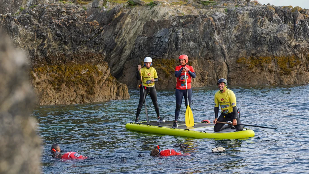You’ll work as a group to navigate along the coastline, paddling into smugglers caves and around rocky outcrops. Your instructor will teach you about different paddle strokes and how certain techniques effectively move the Super SUP towards your destination. Once the moves are mastered, it’s time for some fun and games before diving into the water to explore beneath the ocean’s surface.